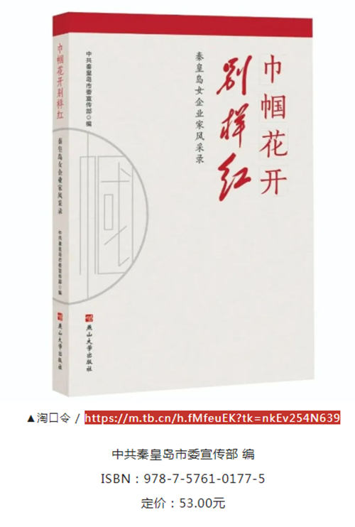 《巾幗花開別樣紅——秦皇島女企業(yè)家風(fēng)采錄》一書是由中共秦皇島市委宣傳部組織編寫,燕山大學(xué)出版社出版發(fā)行。該書以真實的故事、精彩的筆墨、細(xì)膩的筆觸,還原了21位秦皇島女企業(yè)家的創(chuàng)業(yè)歷程,呈現(xiàn)了女企業(yè)家們不畏艱辛、披荊斬棘、迎難而上的可貴品質(zhì),向讀者展現(xiàn)了她們的創(chuàng)業(yè)初心、決心和恒心。