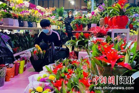 中新網河北新聞1月10日電 (杜楠 孫靜)近日,在秦皇島市的一處花卉市場內,處處洋溢著喜慶的氛圍。鴻運當頭、杜鵑花、茶花等深受市民喜愛。(完)