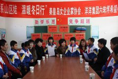 2013年12月9日,洋洋集團攜手市女企業家協會開展了“情系山區娃 溫暖冬日行”活動。洋洋集團聯合市女企業家及洋洋集團商戶向六珠坪洋洋希望小學的孩子們捐贈了150多套棉服,給孩
