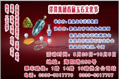弘揚(yáng)玉石文化、展示古韻新風(fēng)、彰顯文化魅力。為喜迎祖國65周年華誕,秦皇島洋洋集團(tuán)于9月20日—10月5日在新花卉廣場舉辦“洋洋集團(tuán)首屆玉石文化節(jié)”活動,此活動旨在傳承玉石文化