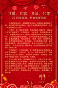 共襄、共享、共舉、共榮 2019年各商、協會新春祝辭 萬象更新辭舊歲,翰墨飄香迎新春。伴隨著新春的喜慶氣息,我們滿懷著豐收的喜悅,送走了碩果累累的2018年,迎來了充滿希望的