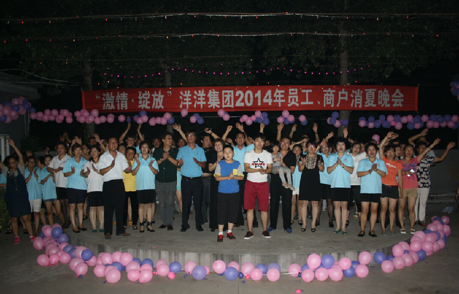 8月8日晚7時許,激情·綻放 洋洋集團2014年員工、商戶消夏晚會在洋洋植物園隆重上演,集團全體員工、各商場優秀商戶以及總裁攜特邀嘉賓參加了此次盛會。