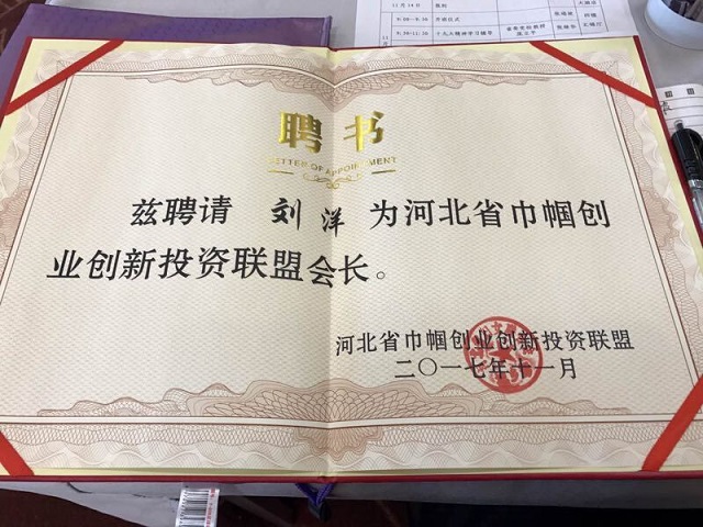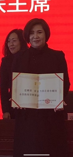 在本次河北省婦聯(lián)舉辦的“巾幗創(chuàng)業(yè)創(chuàng)新會議”上,河北省300多企事業(yè)單位進行參評“河北省巾幗創(chuàng)業(yè)創(chuàng)新投資聯(lián)盟”,劉洋女士以全票通過的選舉方,榮獲由河北省婦聯(lián)頒發(fā)的首屆“河北省巾幗創(chuàng)業(yè)創(chuàng)新投資聯(lián)盟會長”證書及榮譽稱號。