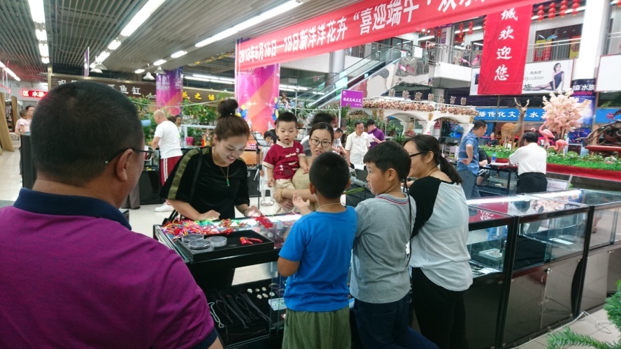 伴隨著秦皇島“海之聲”樂隊(duì)的一首<好日子>,新花卉“喜迎端午-歡樂購” 活動(dòng)正式拉開序幕。本次活動(dòng)由“秦皇島市洋洋花卉有限公司、秦皇島市洋洋綠色植物園有限公司、秦皇島古玩收藏商會(huì)、秦皇島市茶文化協(xié)會(huì)共同聯(lián)合舉辦。活動(dòng)當(dāng)天人潮涌動(dòng),有粽子,有美食,有茶,有飾品,有珠寶等等等等,活動(dòng)現(xiàn)場十分的熱鬧。展示區(qū)有孔雀及梅花鹿標(biāo)本,栩栩如生,美輪美奐。感謝2—A—21聚寶閣、2—A—28鑫福軒、2—A—38、 2—A—45大翡翠福、2—A—55指間文玩、2—C—28辰寶軒、3—A—3中國魏氏(茶)、3—A—4茗悅茶莊(茶)、3—A—2白彬鹿業(yè)積極參與本次歡樂購活動(dòng)!商戶們都對(duì)本次活動(dòng)達(dá)到的銷售額十分的滿意,并且加了顧客不少微信好友,對(duì)自己的店鋪起到了宣傳作用。本次《端午歡樂購》活動(dòng)取得了圓滿的成功!感謝集團(tuán)董事局主席、文副主席、臧副主席、對(duì)新花卉本次活動(dòng)的大力支持,新花卉充滿動(dòng)力!奮勇向前!以后會(huì)多多舉辦活動(dòng),為商戶多做宣傳,我們是一個(gè)團(tuán)隊(duì)!我們是新洋洋花卉!我們與商戶朋友們攜手共同打造我們新洋洋花卉美好的明天!!