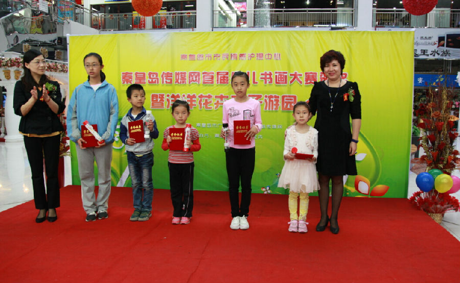 5月24日上午9:30分,由秦皇島市傳媒網(wǎng)主辦、新洋洋花卉承辦的首屆少兒書(shū)畫(huà)大賽頒獎(jiǎng)儀式暨新洋洋花卉親子游園活動(dòng)在新洋洋花卉商場(chǎng)一層大廳隆重開(kāi)啟,秦皇島洋洋集團(tuán)總裁劉洋、秦皇島市廣播電視臺(tái)副臺(tái)長(zhǎng)張艷春、秦皇島傳媒網(wǎng)總經(jīng)理李鵬、秦皇島傳媒網(wǎng)總編輯盧建蒙、秦皇島市市民情感護(hù)理中心副理事長(zhǎng)王興生、華電測(cè)控副總經(jīng)理劉建峰、秦皇島市洋洋集團(tuán)常務(wù)副總李淑蘭、經(jīng)營(yíng)副總文雅琦做為嘉賓出席了本次活動(dòng)。來(lái)自秦皇島市各小學(xué)、社會(huì)各界的獲獎(jiǎng)小選手在家長(zhǎng)們的陪同下齊聚洋洋花卉,首先進(jìn)行的洋洋花卉親子游園活動(dòng),孩子們?cè)诠ぷ魅藛T的引領(lǐng)下,從一層的天王水族到二層的尚城珠寶再到三層的長(zhǎng)城園藝,逐一進(jìn)行參觀游覽,并在三戶(hù)商鋪講解員的認(rèn)真、細(xì)致講解下,與觀賞魚(yú)、翡翠玉石、生態(tài)綠植進(jìn)行了一次親密接觸,在講解過(guò)程中,講解員向孩子們提出了許多問(wèn)題,調(diào)動(dòng)了孩子們的參與熱情,現(xiàn)場(chǎng)氣氛熱烈,得到了家長(zhǎng)們的一致好評(píng),并希望有關(guān)方能多舉辦類(lèi)似的活動(dòng),讓孩子們走出課堂,學(xué)到更多的書(shū)本以外的知識(shí)。