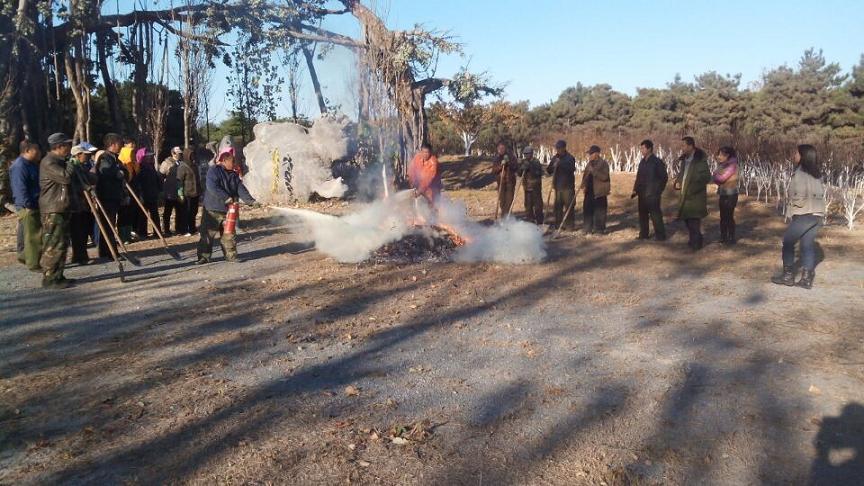 此次防火演練由植物園副經(jīng)理孫亮擔任組長,負責本次安全防火演練的組織與指揮。防火演練開始前,孫亮經(jīng)理安排相關(guān)人員進行了園區(qū)防火安全知識與滅火器使用實際操作的培訓,并對防火演練工作進行了周密的部署安排,提前做好隔離帶等相關(guān)安全措施。并針對冬季園區(qū)枯草清理自編一套防火要領(lǐng):“打隔離、清樹穴;草平攤、不聚堆;無風天、迎風放;看旋風、重點防”的順口溜,要求工作人員必須掌握其中的技巧。