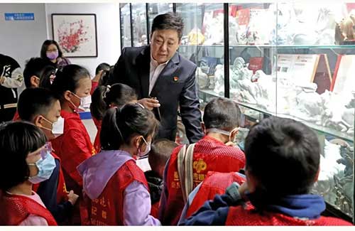 秦皇島市古玩收藏商會(huì)常務(wù)副會(huì)長(zhǎng)兼秘書(shū)長(zhǎng)李峰為小記者們講解紅色文化