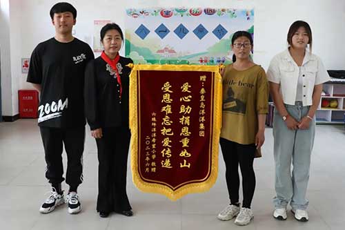 六珠坪洋洋希望小學校長楊曉芬表達了對企業的感謝,特別是對集團董事局劉洋主席的感恩。學校校長和畢業生楊國新、黃紫月共同為集團獻上了“愛心助捐恩重如山,受恩難忘把愛傳遞”的錦旗。楊國新和黃紫月都曾經是六珠坪小學畢業的學生,如今已經就讀高中,今天他們早早來到學校,希望能夠再次看見當年資助過他們的叔叔阿姨們,同時他們希望能在暑假期間來到集團進行實習實踐。
