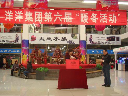 據悉,洋洋集團暖冬活動旨在幫助社會上的弱勢群體,至今已舉辦五屆了。面對社會弱勢全體洋洋 集團發出獻愛心捐款倡議書,得到了廣大員工的熱烈響應,公司領導率先垂范,帶頭捐款,大家都主動從自己的工資里拿出一百、五十、二十、十元.....一股暖流在洋洋古玩城內涓涓流淌,讓寒冬中的人們感到格外溫暖。短短的一個小時,共募集捐款兩千多元。此后在洋洋集團旗下的購物中心和新花卉也舉辦了相同的捐款活動。這次洋洋集團共募集捐款近壹萬元,將全部用于幫助社會弱勢群體。這也正體現了洋洋集團勇于承擔社會責任、無私奉獻的高尚情操。