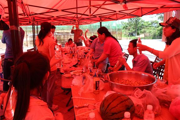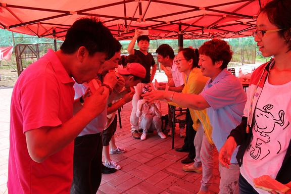 2、大家在勞動之后品嘗著自己動手制作的美味食物,員工們面對面的在一起享受午餐,促進了彼此之間的交流。大家在勞動之后開始了游戲活動的時間。多樣豐富的游戲環節(猜字游戲、吃西瓜比賽、擊鼓傳花、喝啤酒大賽、跳繩等)讓大家忘記了勞累的感覺,完全沉浸在歡快愉悅的氛圍之中。
