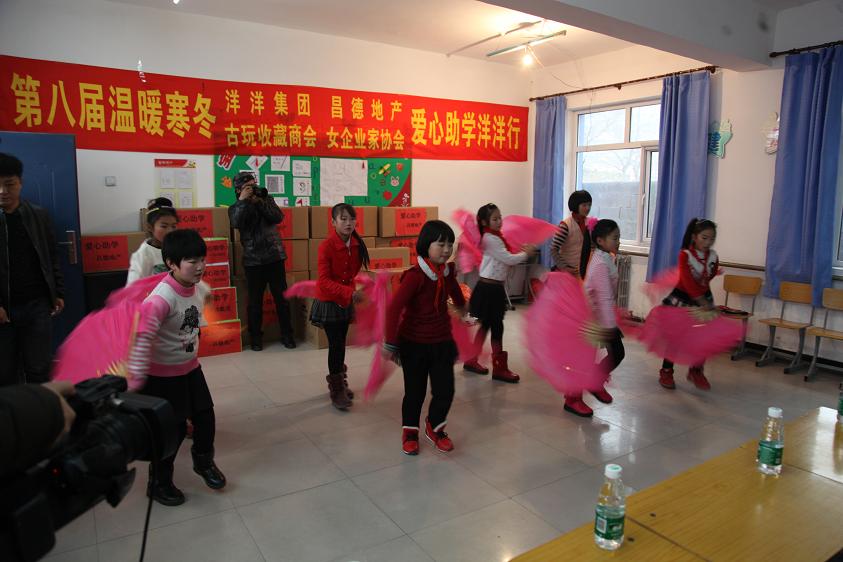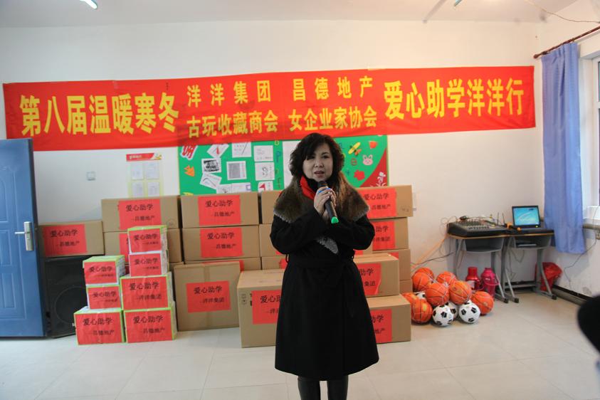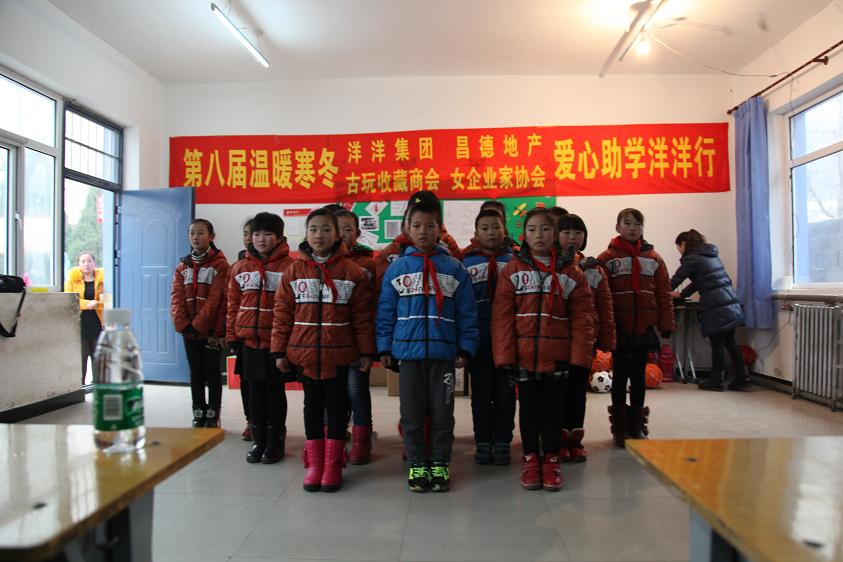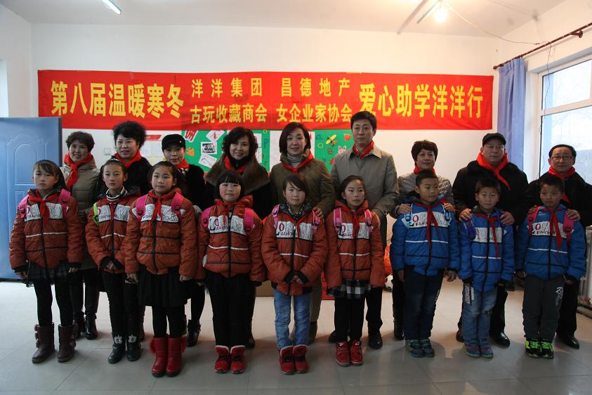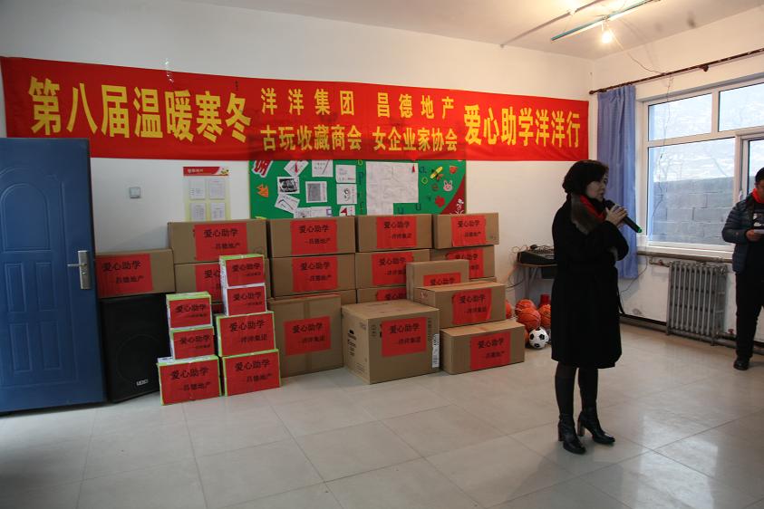 2015年12月9日秦皇島洋洋集團(tuán)總裁劉洋女士攜手女企業(yè)家協(xié)會(huì)、古玩收藏商會(huì)代表親臨青龍縣涼水河鄉(xiāng)六株坪小學(xué)進(jìn)行“愛(ài)的傳承”