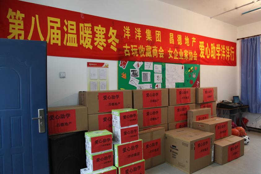 就在2015年12月9日的今天,“秦皇島市洋洋集團(tuán)總裁劉洋女士”攜手秦皇島市女企業(yè)家協(xié)會(huì)代表、秦皇島古玩收藏商會(huì)代表和新花卉、古玩城、購(gòu)物中心商戶代表共計(jì)30余人到青龍縣涼水河鄉(xiāng)六株坪小學(xué)把暖冬愛(ài)心活動(dòng)籌集到的善款和購(gòu)買的書包、糖果、運(yùn)動(dòng)籃球、足球等物品送到孩子們的手中,另外洋洋集團(tuán)購(gòu)買了復(fù)印和打印一體機(jī)捐贈(zèng)給學(xué)校,同時(shí)給孩子們送去了洋洋人的關(guān)愛(ài)和社會(huì)的溫暖。