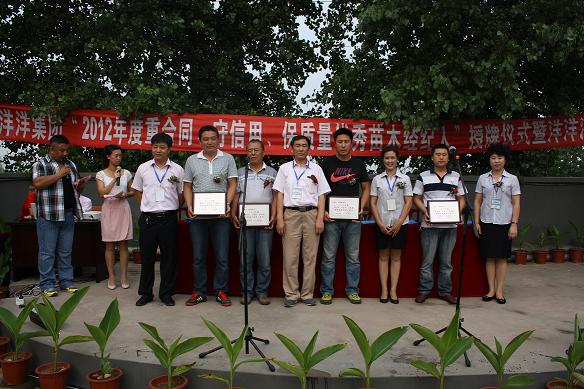 成績(jī)的取得離不開(kāi)集團(tuán)公司的支持與幫助,更離不開(kāi)優(yōu)秀苗木經(jīng)濟(jì)人的誠(chéng)信合作,為更好的推進(jìn)苗木調(diào)運(yùn)工作,掌握優(yōu)質(zhì)苗木資源,實(shí)現(xiàn)公司“綠化+苗木”的品牌業(yè)務(wù)拓展,洋洋集團(tuán)于2012年7月20日,在洋洋綠色植物園舉辦“2012年度重合同、守信用、保質(zhì)量?jī)?yōu)秀苗木經(jīng)濟(jì)人”頒獎(jiǎng)及簽訂長(zhǎng)期合作意向書(shū)活動(dòng)。活動(dòng)不僅邀請(qǐng)了數(shù)十家苗木公司代表、洋洋集團(tuán)全體工作人員,更組織了洋洋花卉購(gòu)物中心及洋洋古玩城的優(yōu)秀商戶(hù)代表參加,以展示洋洋(綠島)苗木公司的工作成績(jī),其中活動(dòng)分為四項(xiàng):