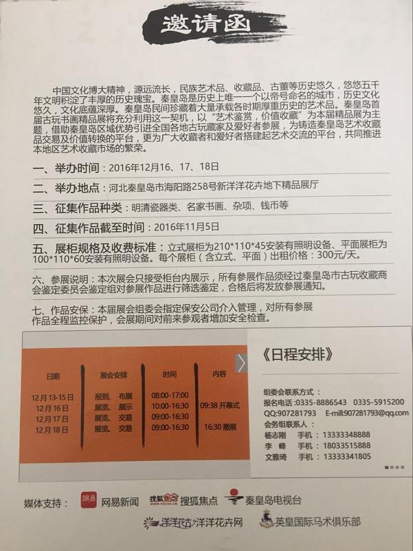2016年12月16日—18日在新洋洋花卉舉辦秦皇島首屆古玩書(shū)畫(huà)精品展活動(dòng)